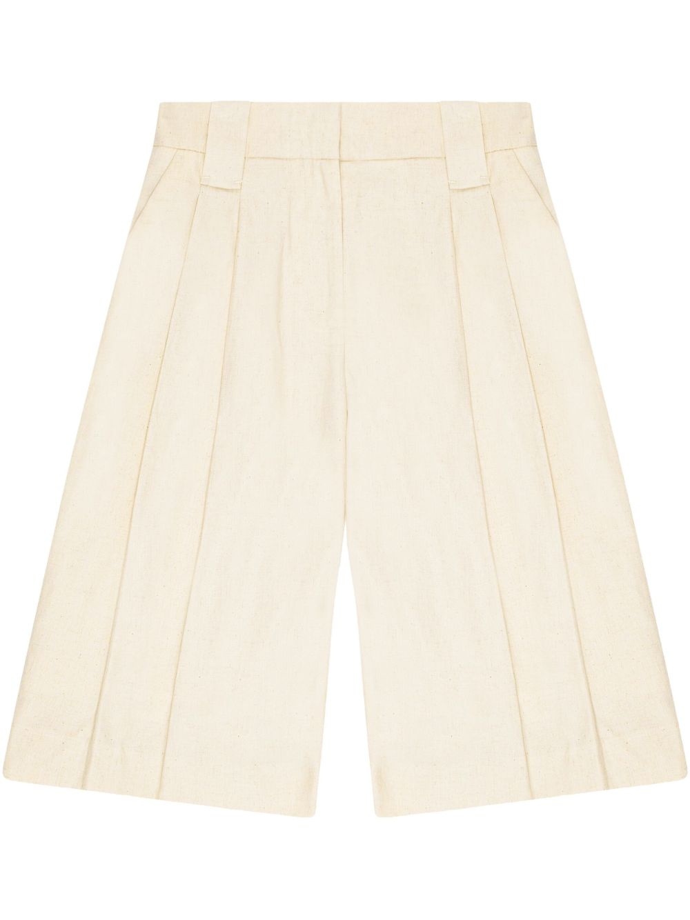 pleat-detail shorts Highlights - Light beige - Hook and zip fly fastening - Two side slash pockets - Rear welt pocket - Belt loops Imported Composition Fabric 100%