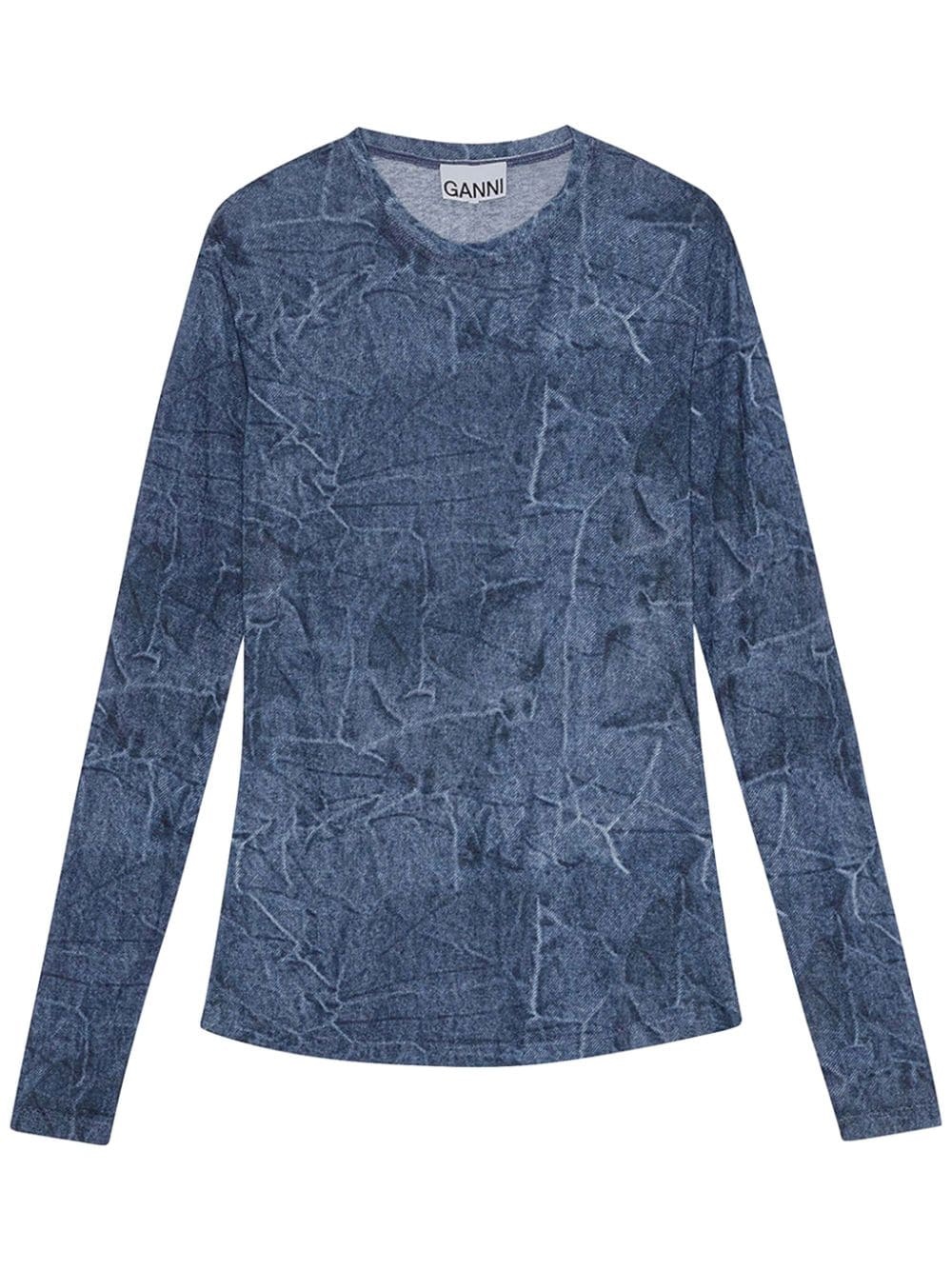printed mesh top Highlights - Blue - Mesh design - Abstract pattern print - Crew neck - Long sleeves - Straight hem Imported Composition Recycled Polyester 51%, Polyester 49% Washing instructions Read Manufacturer Guidelines