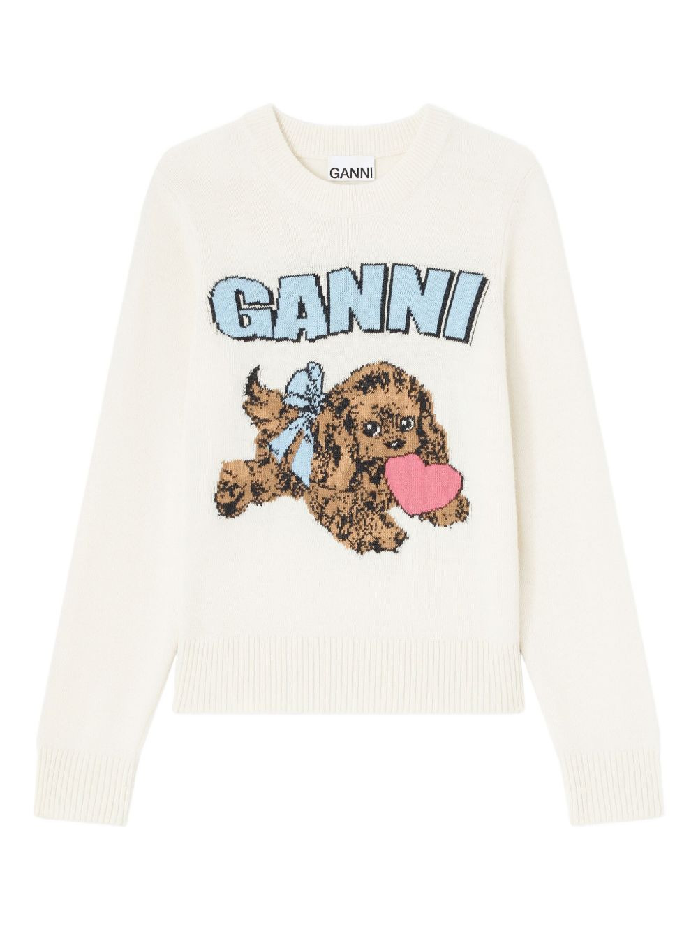 Puppy logo intarsia sweater Highlights - Off-white - Dog intarsia - Logo lettering - Crew neck - Long sleeves - Ribbed trims Imported Composition Wool 45%, Recycled Wool 35%, Recycled Polyamide 20% Washing instructions Read Manufacturer Guidelines