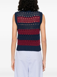recycled cotton-blend top Highlights - Navy blue - Crew neck - Sleeveless - Ribbed hem - Intarsia-knit logo Imported Composition Recycled Polyester 50%, Recycled Cotton 50% SIZE & FIT Model measurements Height 5 ft 10 in(1.79 m) Bust/Chest 33.07 in(84 cm) Hips 35.82 in(91 cm) Waist 24.01 in(61 cm) FittingInformation Designed for a relaxed fit, this piece allows for comfort and movement when worn Made with a midweight knit, this piece offers some stretch