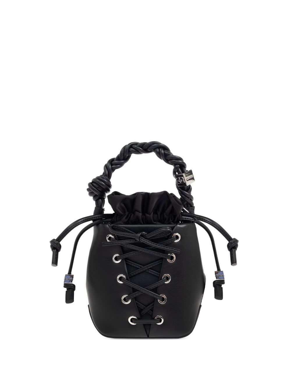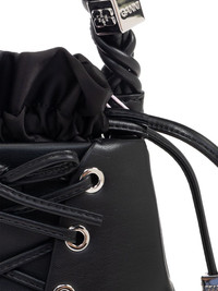 recycled-leather tote bag Highlights - Black - Top drawstring fastening - Single top handle - Lace-up detailing Imported Composition Outer: Recycled Leather 100%, Fabric 100% SIZE & FIT Measurement DEPTH 3.54 in(9 cm) HEIGHT 5.9 in(15 cm) WIDTH 6.29 in(16 cm)