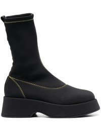 Retro Flatform ankle boots Highlights - Black - Recycled polyamide - Round toe - Zip fastening - Contrast stitching - Pull-tab at the heel - Logo lettering - No lining - Flatform sole Imported Composition Outer: Recycled Polyamide 100% Lining: Fabric 100% Sole: Rubber 100% SIZE & FIT Measurement HEEL 1.96 in(5 cm) HEIGHT 8.66 in(22 cm) Sole height 1.37 in(3.5 cm)