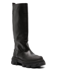 ruber toecap leather boots Highlights - Black - Calf leather - Panelled design - Round toe - Rubber toecap - Pull-tab at the heel - Pull-on style - Knee-high - Chunky rubber sole Imported Composition Leather 100% SIZE & FIT Measurement CIRCUMFERENCE 13.77 in(35 cm) HEEL 1.96 in(5 cm) HEIGHT 13.77 in(35 cm) Sole height 1.37 in(3.5 cm)