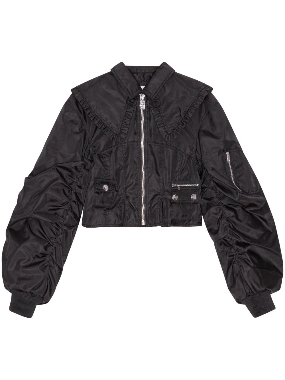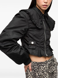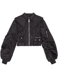 ruffle-collar bomber jacket Highlights - Black - Front zip fastening - Two front flap pockets - Sleeve zip pocket - Ribbed cuffs Imported Composition Fabric 100%