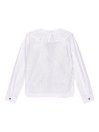 ruffle collar organic cotton blouse Highlights - White - Organic cotton - Ruffle collar - V-neck - Front tie fastening - Long sleeves - Buttoned cuffs - Straight hem Imported Composition Organic Cotton 100% Washing instructions Read Manufacturer Guidelines