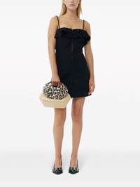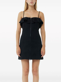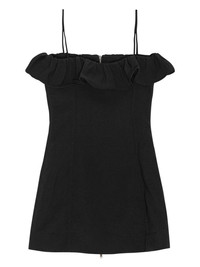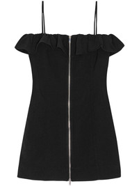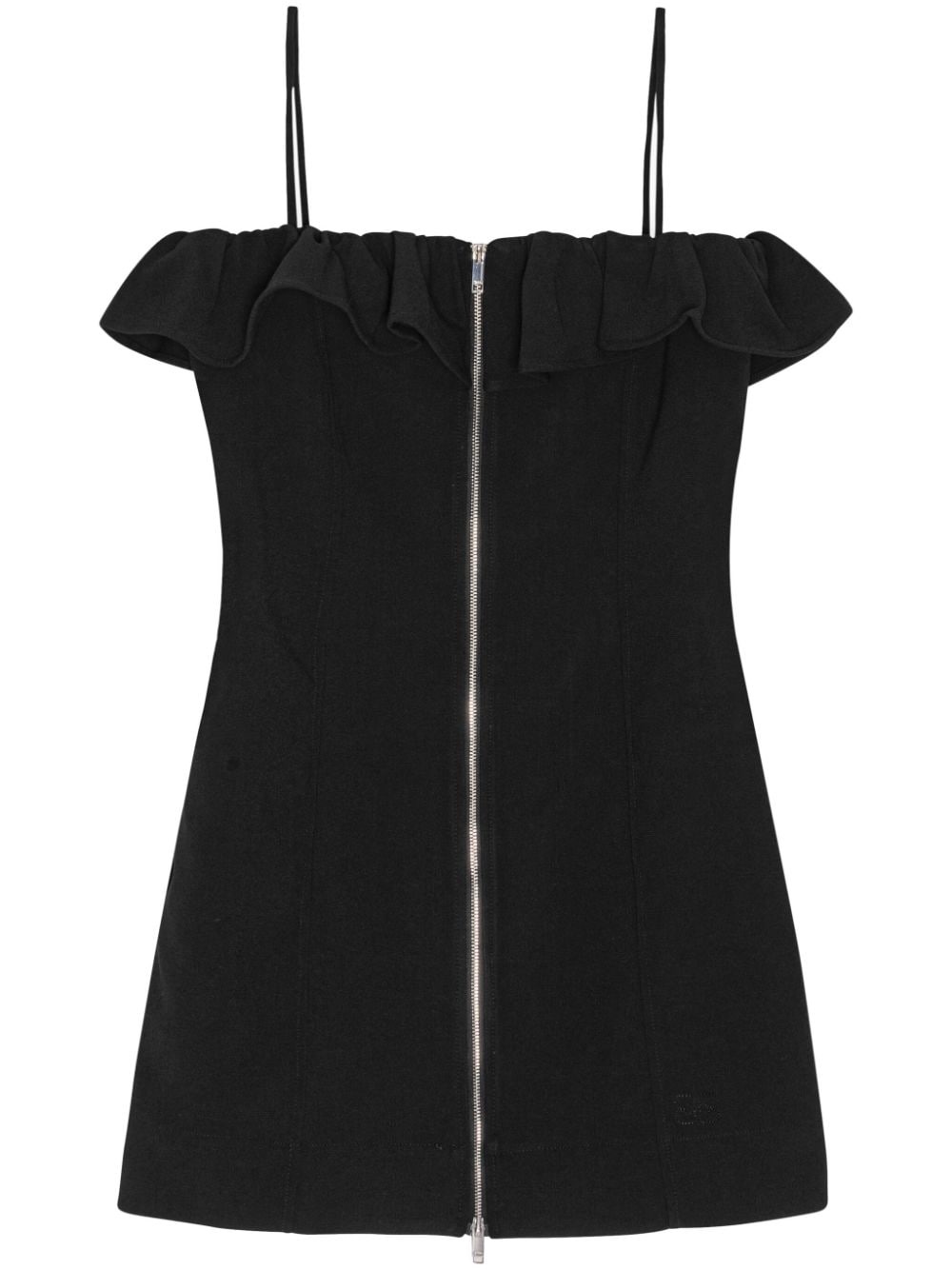 ruffle-trim minidress Constructed with a blend of recycled materials, Ganni's minidress is cut to a square neckline that's enhanced with ruffle detailing. Highlights - Black - Recycled polyester blend - Ruffled detailing - Square neck - Front two-way zip fastening - Spaghetti straps - Thigh-length Imported Composition Recycled Polyester 51%, Polyester 49% Washing instructions Read Manufacturer Guidelines