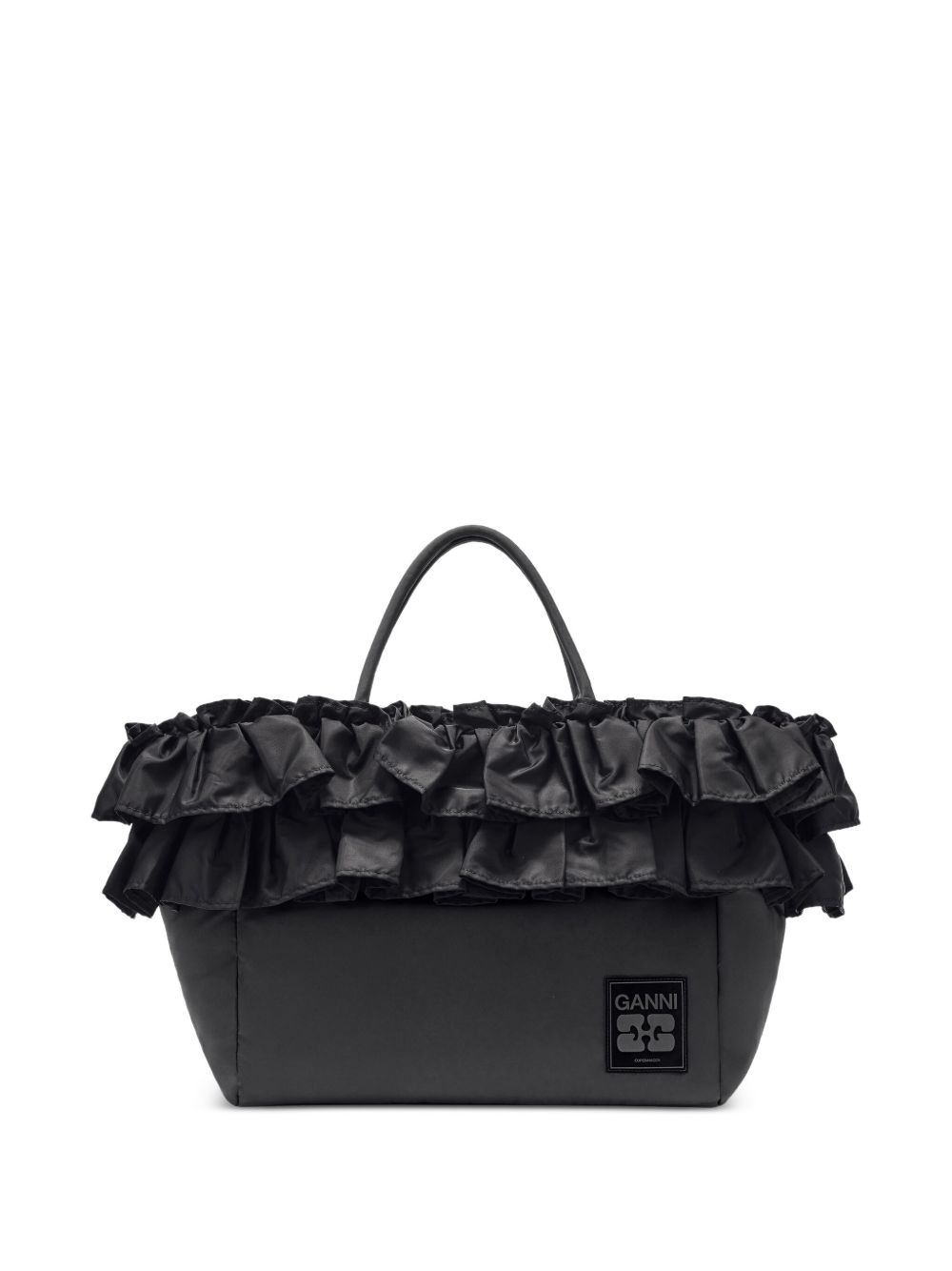 ruffled-detail shoulder bag Highlights - Black - Ruffled trim - Top handle - Internal zip-fastening pocket - Logo patch Imported Composition Outer: Fabric 100%