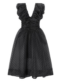 ruffled polka dot-pattern mini dress Highlights - Black - Polka dot pattern - V-neck - Ruffled detail - Gathered detail - Short sleeves Imported Composition Fabric 100% Washing instructions Read Manufacturer Guidelines