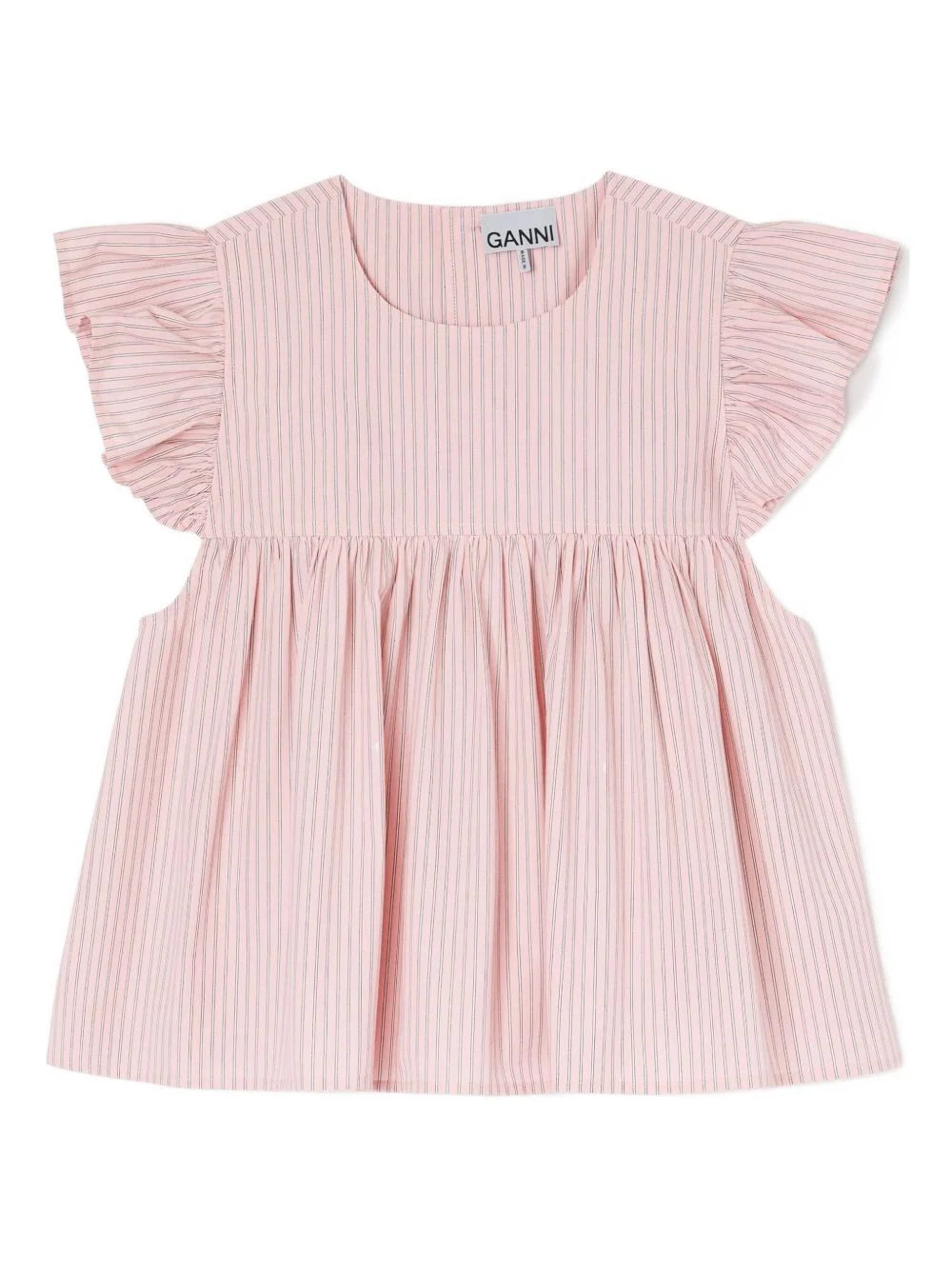 ruffled striped top Highlights - Pink - Striped pattern - Ruffled sleeves - Round neck - Gathered detail Imported Composition Fabric 100% Washing instructions Read Manufacturer Guidelines