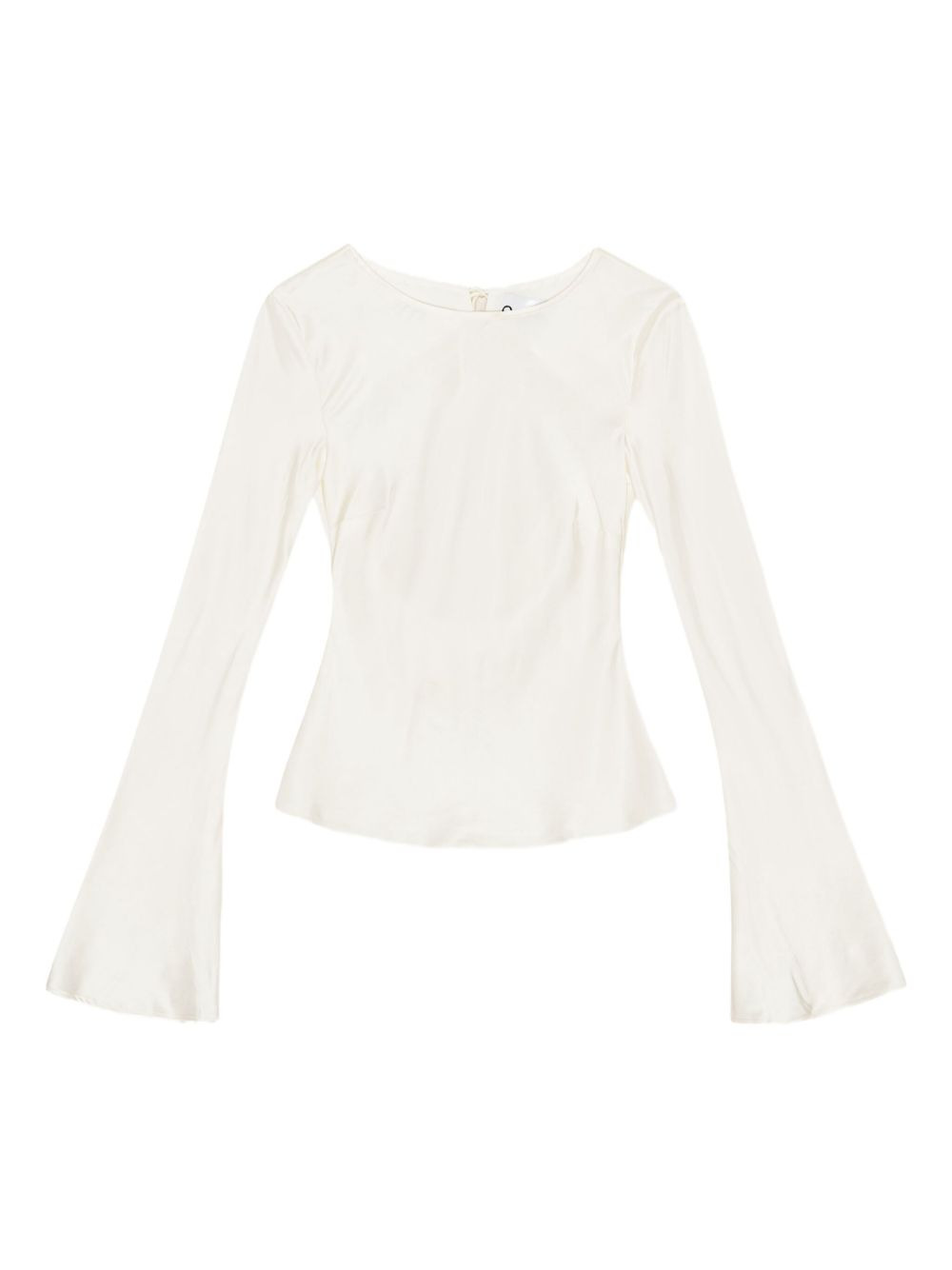long-sleeve blouse Highlights - White - Crew neck - Long sleeves - Flared cuffs Imported Composition Fabric 100%