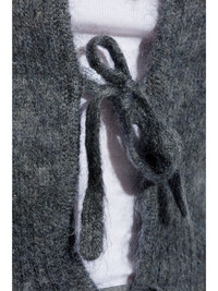 GREY LIGHT MOHAIR TIE STRING CARDIGAN
