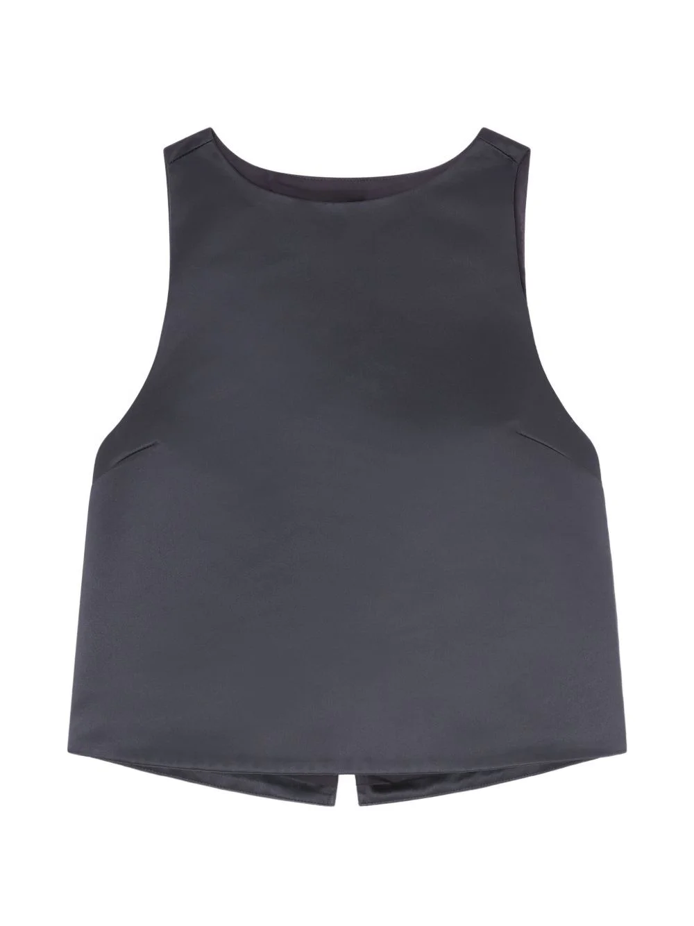 self-tie tank top Highlights - Black - Rear tie fastening - Sleeveless - Round neck Imported Composition Satin 100% Washing instructions Read Manufacturer Guidelines