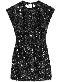sequin-embellished mini dress Highlights - Black - Recycled polyester blend - Stretch-design - Sequin embellishment - Rear tie fastening - Round neck - Short sleeves - Straight hem - Thigh-length Imported Composition Recycled Polyester 97%, Spandex/Elastane 3% SIZE & FIT Measurement HIPS 34.64 in(88 cm) LENGTH 31.88 in(81 cm) WAIST 24.4 in(62 cm)
