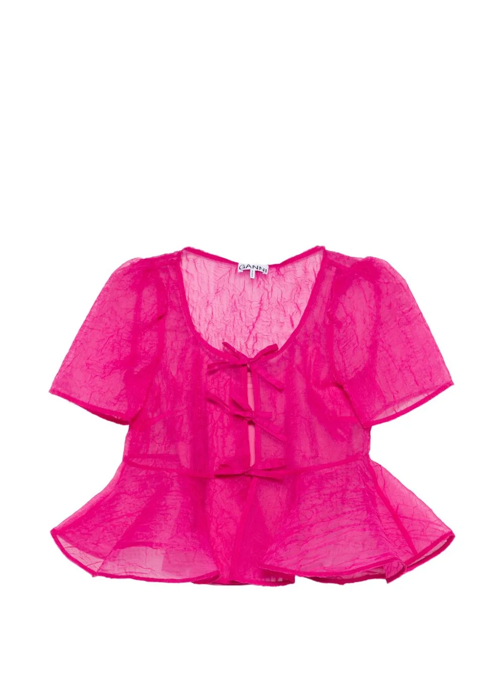 shibori organza blouse Highlights - Pink - Cut out detail - Peplum hem - Bow detail - Short sleeves - Organza Imported Composition Polyester 100% Washing instructions Dry Clean Only