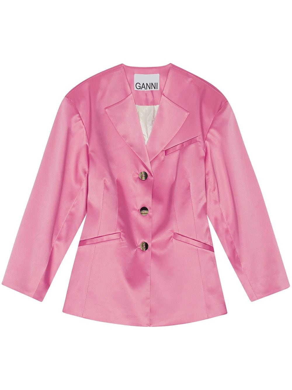 single-breasted blazer Highlights - Rose pink - Recycled polyester blend - Notched lapels - Front button fastening - Fitted waistline - Long sleeves - Chest welt pocket - Two front jetted pockets Imported Composition Recycled Polyester 91%, Elastane 9% SIZE & FIT Measurement SLEEVE LENGTH 21.65 in(55 cm) LENGTH 27.95 in(71 cm)