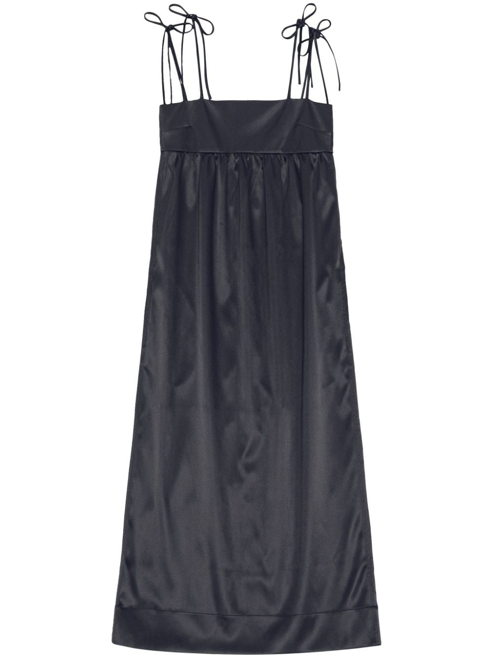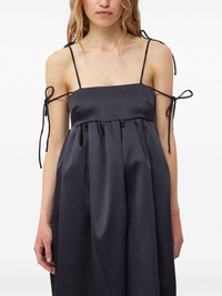 sleeveless satin maxi dress Highlights - Black - Recycled polyester - Satin finish - Pleat detailing - Smocked panel - Square neck - Empire line - Adjustable shoulder straps - Long length Imported Composition Recycled Polyester 91%, Elastane 9% Washing instructions Read Manufacturer Guidelines