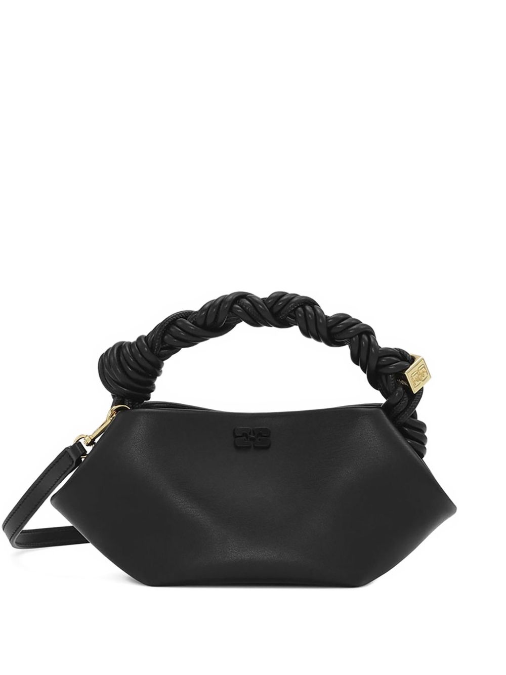 Bou mini bag Highlights - Black - Magnetic fastening - Single braided top handle - Detachable shoulder strap - Main compartment Imported Composition Outer: Recycled Leather 65%, Polyurethane 19%, Polyester 16% Lining: Recycled Cotton 65%, Cotton 35% SIZE & FIT Measurement DEPTH 4.52 in(11.5 cm) HEIGHT 4.33 in(11 cm) WIDTH 9.84 in(25 cm)