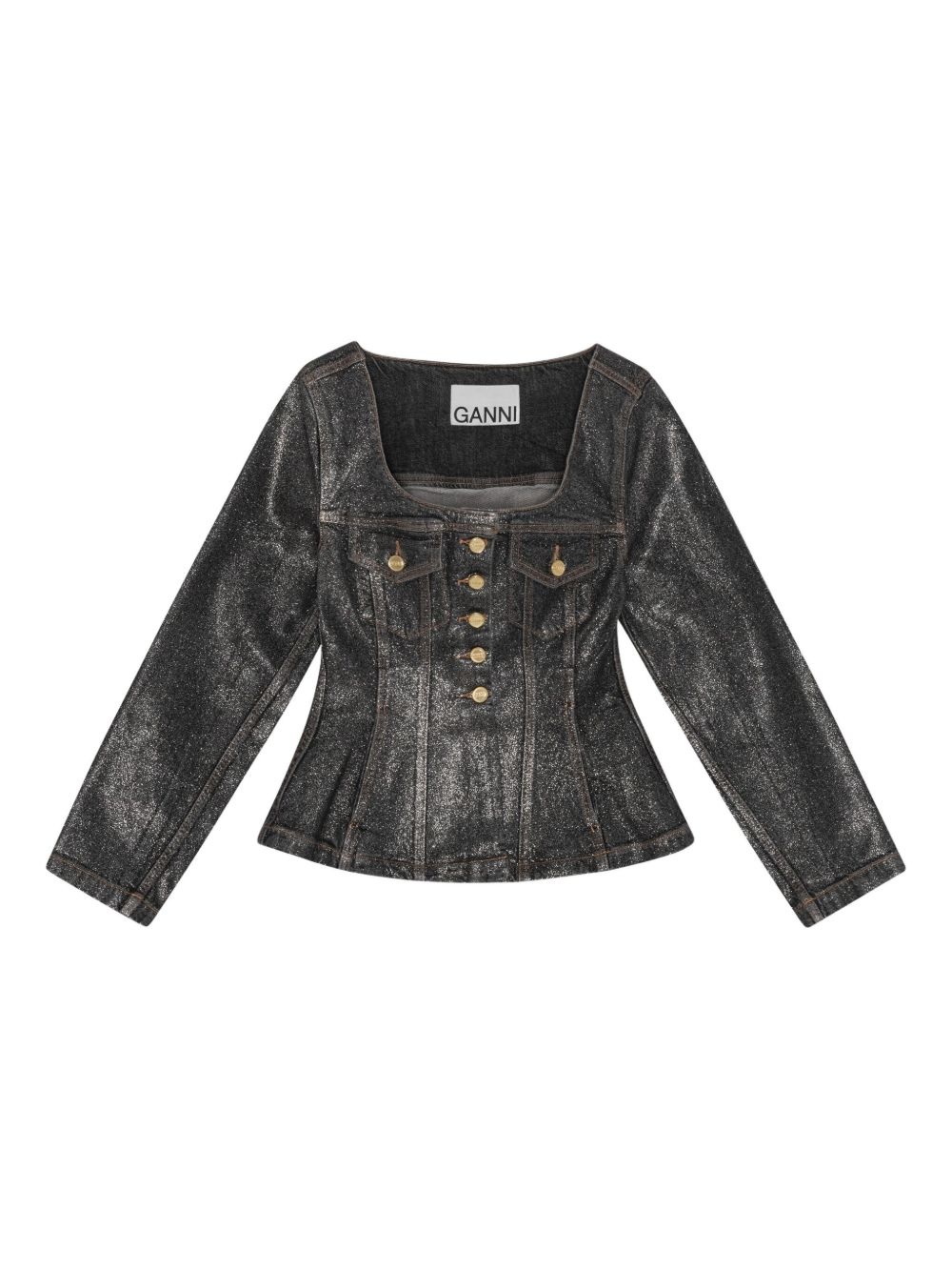 square-neck denim jacket Highlights - Black - Front button fastening - Peplum waist - Two chest flap pockets Imported Composition Fabric 100% Washing instructions Read Manufacturer Guidelines
