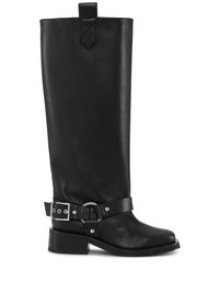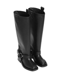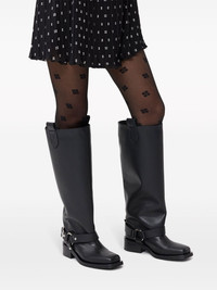 BLACK UNDER-KNEE BIKER BOOTS