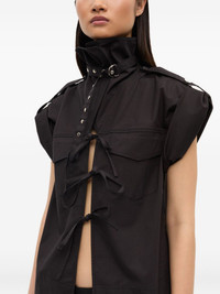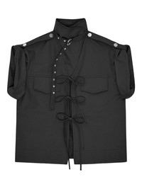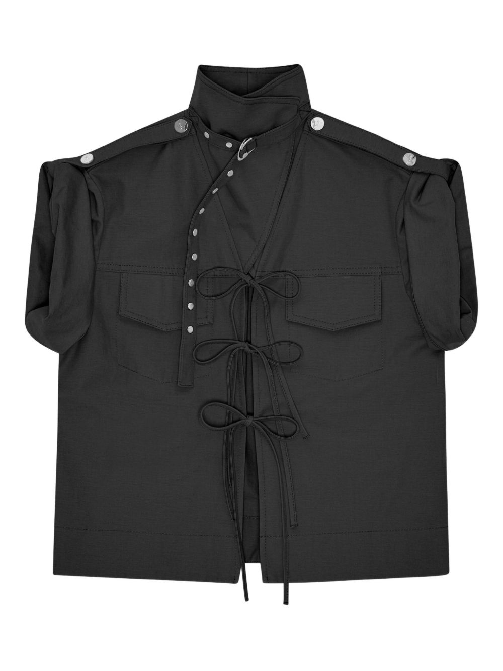 stretch-cotton blouse Highlights - Black - Front tie fastening - V-neck - Short sleeves - Straight hem Imported Composition Fabric 100%
