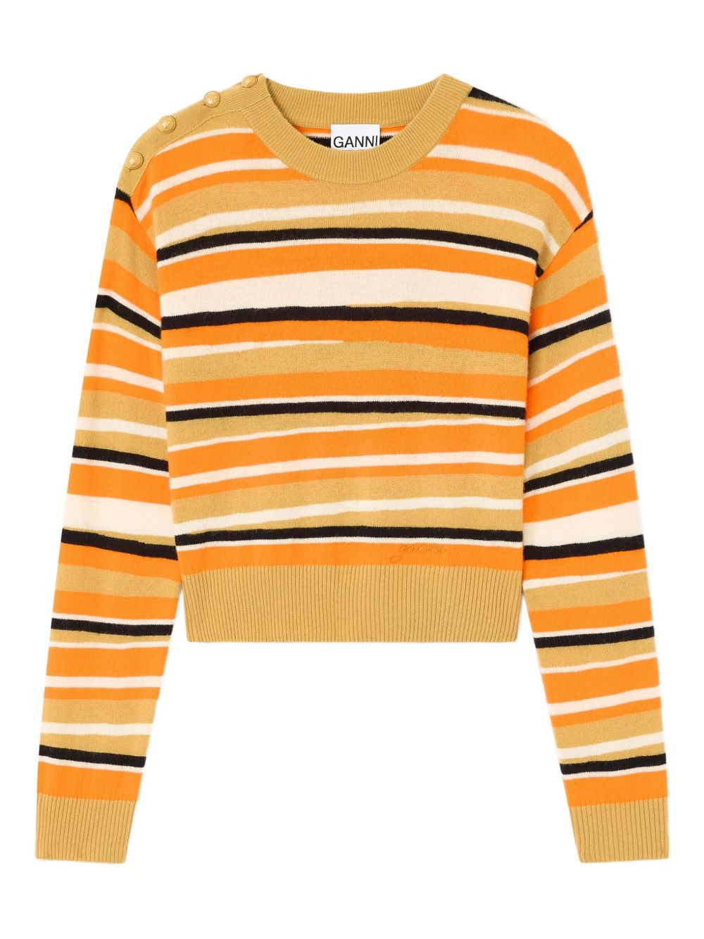 striped button-detailed sweater Highlights - Yellow - Horizontal stripes - Crew neck - Long sleeves - Button detail - Ribbed hem Imported Composition Fabric 100% Washing instructions Read Manufacturer Guidelines