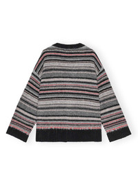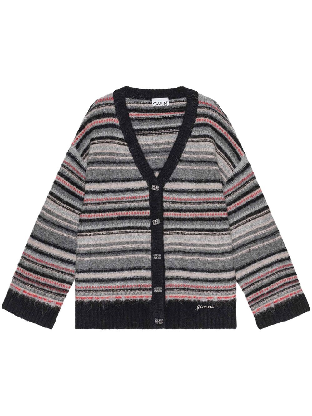 striped buttoned cardigan Highlights - Black/multicolour - Ribbed knit - Pinstripe pattern - Contrasting border - Button fastening - V-neck - Long sleeves - Ribbed cuffs and hem Imported Composition Alpaca 32%, Merino 32%, Recycled Polyester 30%, Elastane 6%
