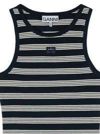 striped embroidered-logo top Highlights - Dark blue - Striped - Embroidered detail - Round neck - Sleeveless Imported Composition Fabric 100% Washing instructions Read Manufacturer Guidelines