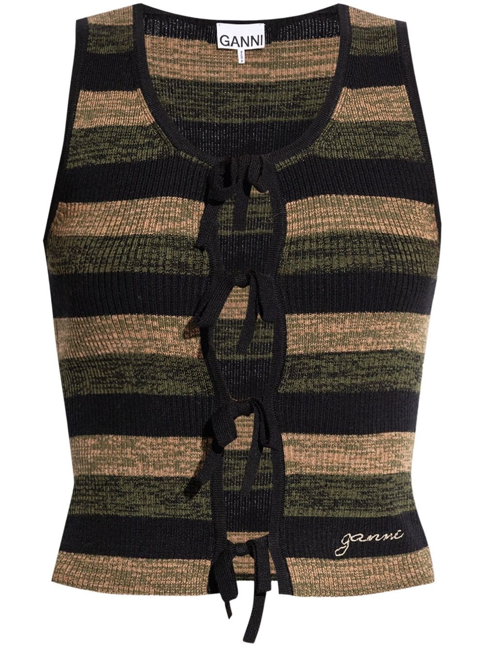 STRIPED RIBBED MERINO WOOL TIE TOP