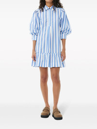BLUE STRIPED COTTON MINI SHIRT DRESS