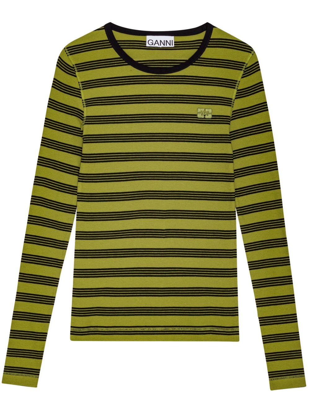 striped T-shirt Highlights - Lime green - Scoop neck - Long sleeves - Embroidered logo at the chest Imported Composition Fabric 100%