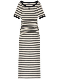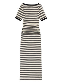 STRIPED SOFT COTTON RIB SHORT SLEEVE DRESS