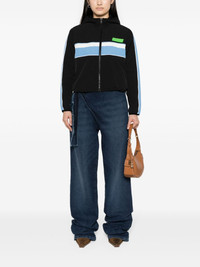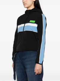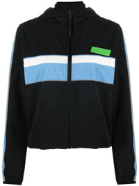 striped track jacket GANNI adopts a sporty approach in this black track jacket. It’s cut from wind-resistant shell to a cropped silhouette and features reflective piping, contrasting stripes and a rubberised logo applique at the chest. Highlights - Black/multicolour - Stripe detailing - Reflective detailing - Rubberised logo detail - Logo patch at the chest - Classic hood - Front zip fastening - Long sleeves - Elasticated cuffs - Two side slit pockets - Rear patch pocket - Drawstring hem - Cropped Imported Composition Outer: Recycled Polyamide 88%, Spandex/Elastane 12% Lining: Recycled Polyester 100% SIZE & FIT Model measurements Height 5 ft 9 in(1.75 m) Bust/Chest 32.67 in(83 cm) Hips 38.58 in(98 cm) Waist 26.77 in(68 cm) FittingInformation Designed for a relaxed fit, this piece allows for comfort and movement when worn The internal drawstring at the hem allows for fitted preferences Made from a midweight stretch fabric, this piece offers elasticity and flexibility when worn This piece fits true to size – take your usual size Washing instructions Machine Wash