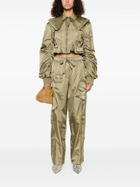 tapered cargo pants Highlights - Sage green - Elasticated drawstring waistband - Two side slit pockets - Multiple cargo pockets - Seam detailing Imported Composition Recycled Polyacrylic 93%, Polyurethane 7% SIZE & FIT Model measurements Height 5 ft 10 in(1.79 m) Bust/Chest 31.88 in(81 cm) Hips 35.43 in(90 cm) Waist 23.62 in(60 cm) Washing instructions Machine Wash