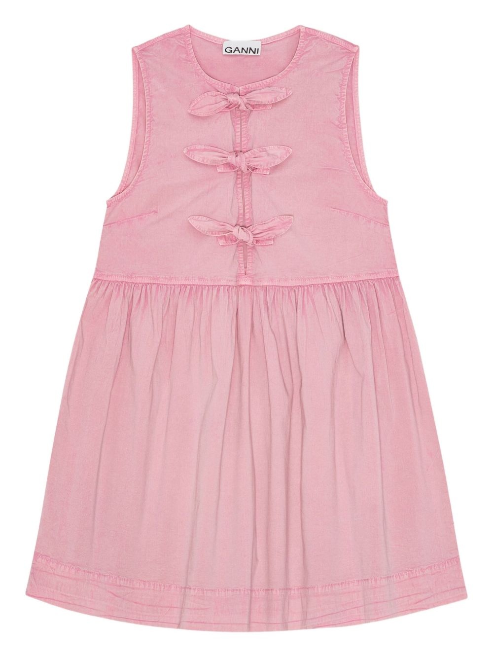 tie-front dress Highlights - Pastel pink - Sleeveless design - Ruffled button detailing - Gathered skirt - Round neck Imported Composition Organic Cotton 97%, Elastane 3% Washing instructions Read Manufacturer Guidelines
