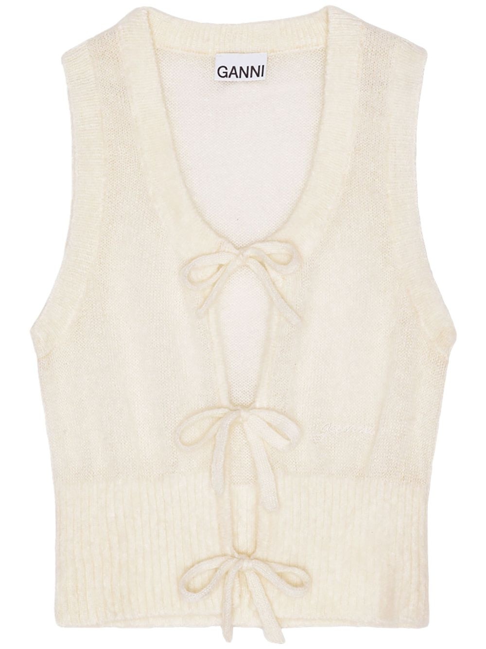 tied vest Highlights - Ecru - Front tie fastening - Scoop neck - Sleeveless - Straight hem Imported Composition Mohair 55%, Nylon 29%, Merino 16%