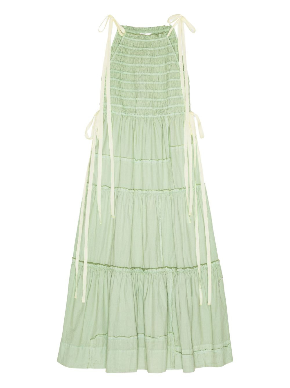tiered dress Highlights - Light green - Tie-fastening straps - Smocked panel - Tiered skirt Imported Composition Fabric 100% Washing instructions Read Manufacturer Guidelines