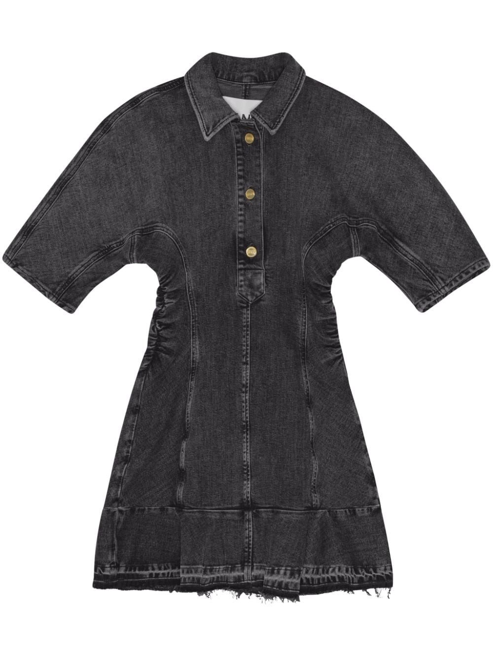tint-edge denim mini dress Highlights - Black/washed black - Stretch organic cotton - Denim - Tinted seam detailing - Classic collar - Short front button fastening - Gold-tone buttons - Half-length sleeves - Ruffle hem - Thigh-length Imported Composition Organic Cotton 99%, Elastane 1% Washing instructions Read Manufacturer Guidelines
