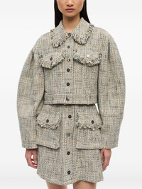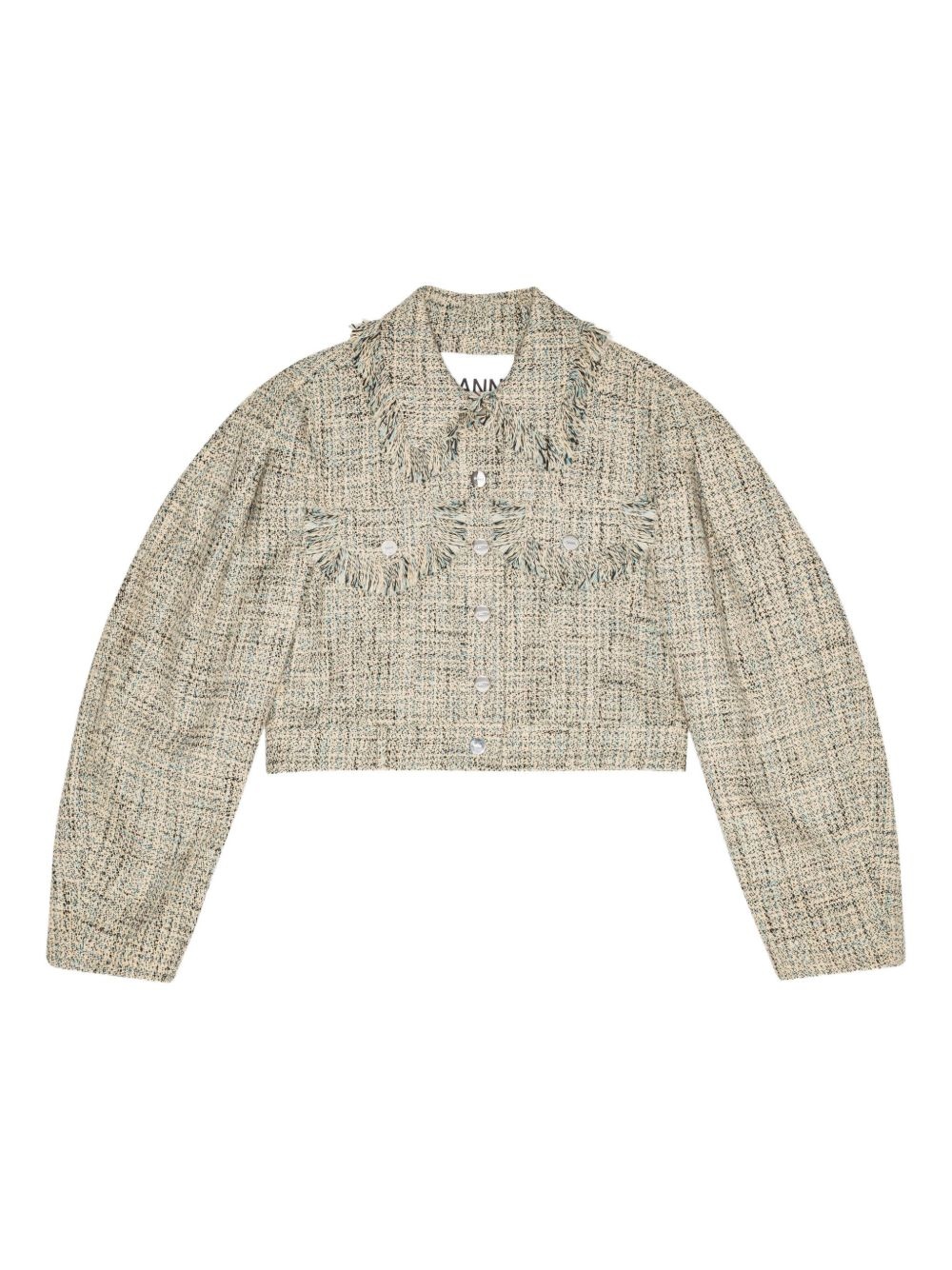 tweed jacket Highlights - Light beige - Front button fastening - Two button-fastening chest pockets - Frayed detailing - Pointed flat collar Imported Composition Fabric 100% Washing instructions Read Manufacturer Guidelines