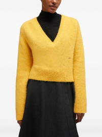 V-neck ribbed sweater Highlights - Yellow - V-neck - Ribbed hem and cuffs - Long sleeves - Logo detail Imported Composition Fabric 100% Washing instructions Read Manufacturer Guidelines