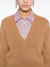 V-neck wool sweater Highlights Imported Composition Wool 100% SIZE & FIT Model measurements Height 5 ft 9 in(1.76 m) Bust/Chest 31.49 in(80 cm) Hips 35.43 in(90 cm) Waist 23.62 in(60 cm)