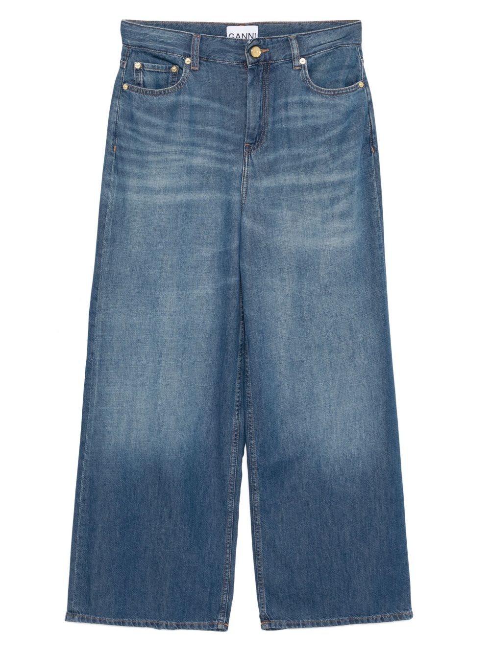 wide-leg jeans Highlights - Navy blue - Front button and zip fastening - Belt loops - Classic five pockets - Contrast stitching Imported Composition Organic Cotton 64%, Lyocell 36% SIZE & FIT Model measurements Height 5 ft 9 in(1.76 m) Bust/Chest 31.1 in(79 cm) Hips 35.03 in(89 cm) Waist 24.4 in(62 cm) FittingInformation Designed with a wide leg cut, these jeans allow for a close fit at the waist and offer a loose and roomy fit over the leg Constructed from stretch denim, this piece offers a stretch fit with durability