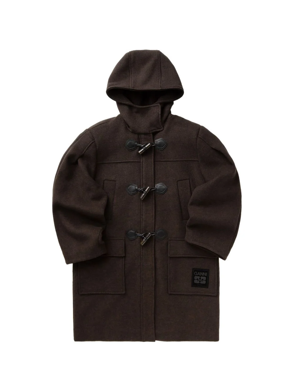 wool duffle coat Highlights - Dark brown - Wool - Toggle fastening - Patch pocket - Logo patch Imported Composition Wool 72%, Polyester 23%, Cashmere 5% Lining: Acetate 57%, Viscose 43% Washing instructions Read Manufacturer Guidelines