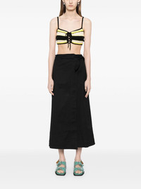 wrap-around A-line midi skirt Highlights - Black - Stretch organic cotton - Wrap design - A-line - High-waisted - Side tie fastening - Side slits - Mid-calf length Imported Composition Organic Cotton 98%, Elastane 2% SIZE & FIT Model measurements Height 5 ft 10 in(1.77 m) Bust/Chest 30.7 in(78 cm) Hips 35.03 in(89 cm) Waist 23.62 in(60 cm) FittingInformation This midi-length skirt is intended to be worn just below the waist The vented hem offers movement at the rear Constructed from stretch denim, this piece offers a stretch fit with durability This piece fits true to size – take your usual size