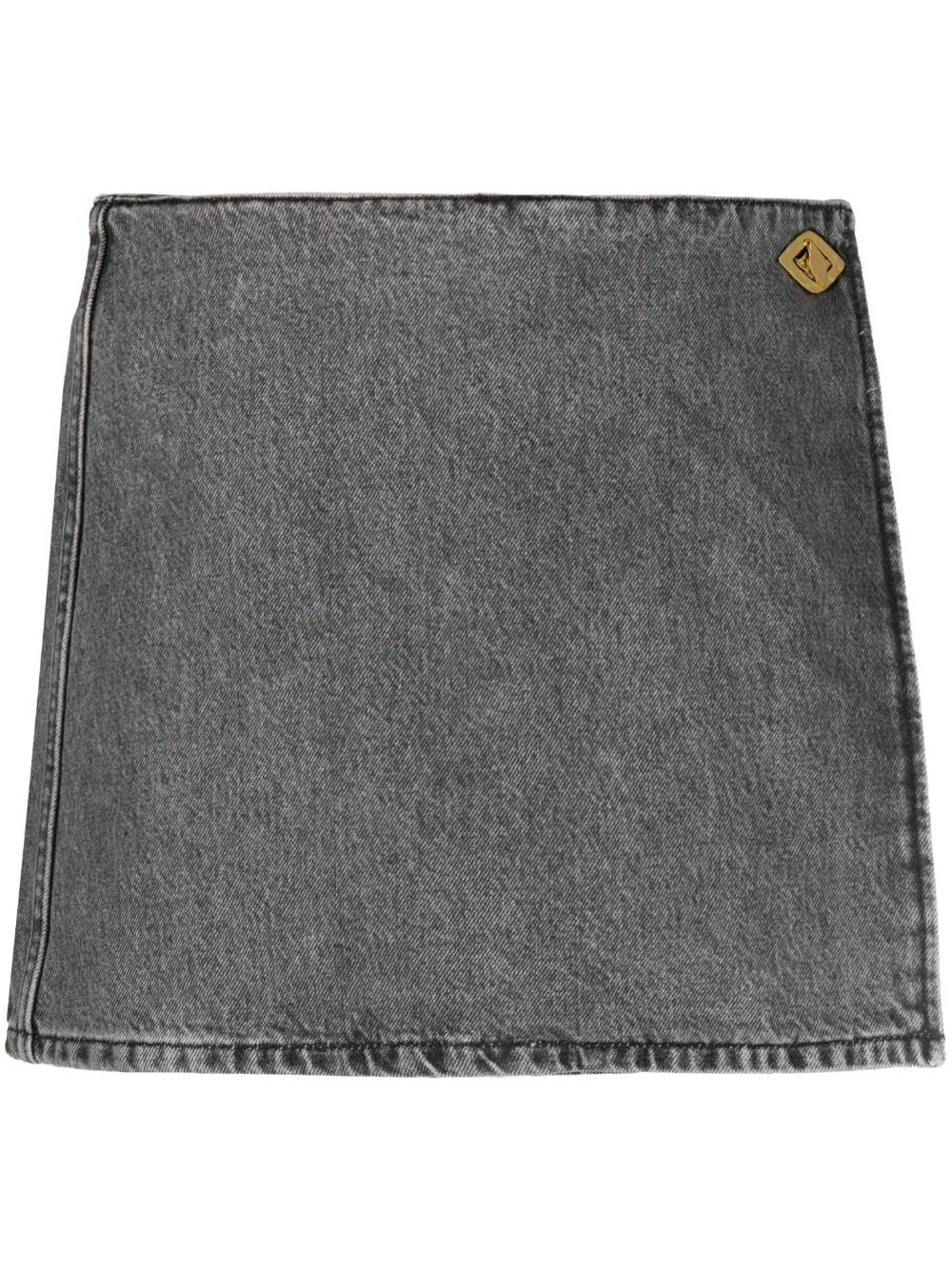 wrap denim miniskirt This grey skirt from GANNI is cut from organic-cotton denim to a wrap silhouette that sits high on the waist and grazes the thigh. A single logo-engraved turn-clasp button details the hip. Highlights - Grey - Organic cotton - Wrap design - High waist - Front button fastening - A-line - Straight hem - Thigh-length Imported Composition Organic Cotton 100% SIZE & FIT Model measurements Height 5 ft 10 in(1.78 m) Bust/Chest 30.7 in(78 cm) Hips 34.64 in(88 cm) Waist 23.22 in(59 cm) FittingInformation This mini-length skirt is intended to be worn low on the hips Made from a midweight non-stretch fabric This piece fits true to size – take your usual size Washing instructions Machine Wash