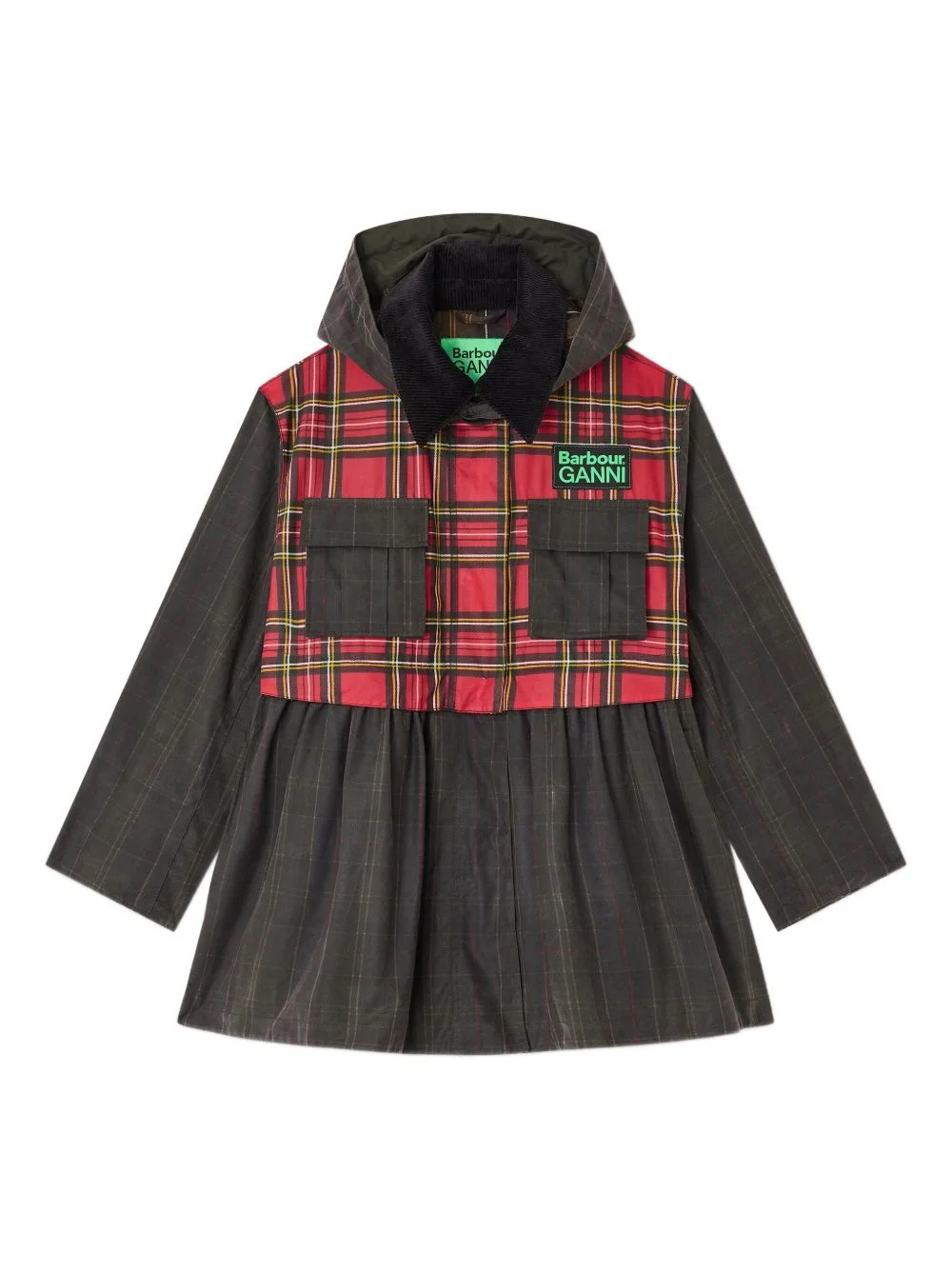 x Barbour tartan peplum coat Highlights - Dark green - Tartan pattern - Corduroy collar - Hooded - Front pockets - Press-stud and zip fastening - Detachable peplum hem Imported Composition Fabric 100% Washing instructions Read Manufacturer Guidelines