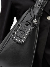 XXL leather shoulder bag Highlights - Black - Top zip fastening - Single shoulder strap - Lace-up detailing - Mirror tag Imported Composition Outer: Recycled Leather 65%, Polyurethane 19%, Polyester 16% Lining: Recycled Cotton 65%, Cotton 35% SIZE & FIT Measurement DEPTH 7.08 in(18 cm) HEIGHT 14.96 in(38 cm) WIDTH 22.04 in(56 cm)