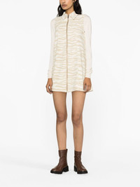 zebra-print denim minidress Ganni infuses this minidress with its minimalist yet modernised approach. Cut from organic cotton, it's printed with zebra detailing and finished with a front zip fastening. Highlights - Light beige - Organic cotton blend - Denim - Zebra print - Classic collar - Front zip fastening - Sleeveless - Thigh-length Imported Composition Organic Cotton 98%, Spandex/Elastane 2% SIZE & FIT Model measurements Height 5 ft 10 in(1.78 m) Bust/Chest 31.49 in(80 cm) Hips 35.03 in(89 cm) Waist 23.62 in(60 cm) FittingInformation Designed for a relaxed fit, this piece allows for comfort and movement when worn Slightly short in length; consider your own measurements Made from a midweight stretch fabric, this piece offers elasticity and flexibility when worn This piece fits true to size – take your usual size