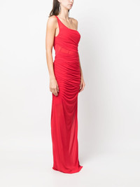 Moni one-shoulder maxi dress With a slightly see-through construction, this Moni dress by Gauge 81 is defined by a drape detailing that surrounds the silhouette, giving it an asymmetric layered effect. Presented in the AW23 collection, this one-shoulder design reflects the brand's monochromatic penchant with a scarlet red colourway. Highlights - Scarlet - One-shoulder - Sleeveless - Layered design - Draped detailing - Side slit - Long length Imported Composition Viscose 77%, Polyester 23% SIZE & FIT Model measurements Height 5 ft 9 in(1.76 m) Bust/Chest 33.07 in(84 cm) Hips 34.64 in(88 cm) Waist 25.59 in(65 cm) FittingInformation Designed for a close fit throughout Made from a midweight non-stretch fabric, this piece offers minimal elasticity when worn This piece fits true to size – take your usual size