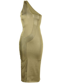one-shoulder knitted dress Spliced with a semi-sheer panel from the neckline to hem, GAUGE81’s one-shoulder dress illustrates the brand’s statement aesthetic. Highlights - Khaki - Knitted construction - Stretch-design - Semi-sheer panels - One-shoulder - Mid-length Imported Composition Recycled Polyester 66%, Polyester 34% SIZE & FIT Model measurements Height 5 ft 10 in(1.77 m) Bust/Chest 32.67 in(83 cm) Hips 35.43 in(90 cm) Waist 23.62 in(60 cm) FittingInformation Designed for a close fit throughout Made with a midweight knit, this piece offers some stretch This piece fits close in all sizes – take your usual size Washing instructions Dry Clean Only