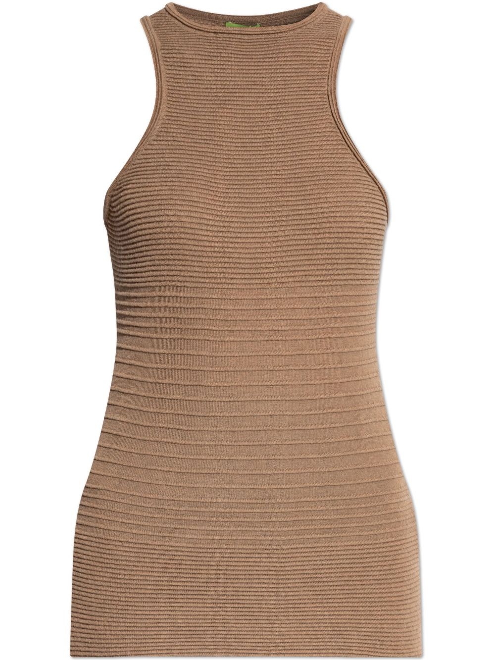 ribbed tank top Highlights - Camel brown - Fine ribbed - Horizontal stripe pattern - Stretch-design - Round neck - Sleeveless Imported Composition Modal 50%, Nylon 35%, Wool 15% Washing instructions Read Manufacturer Guidelines